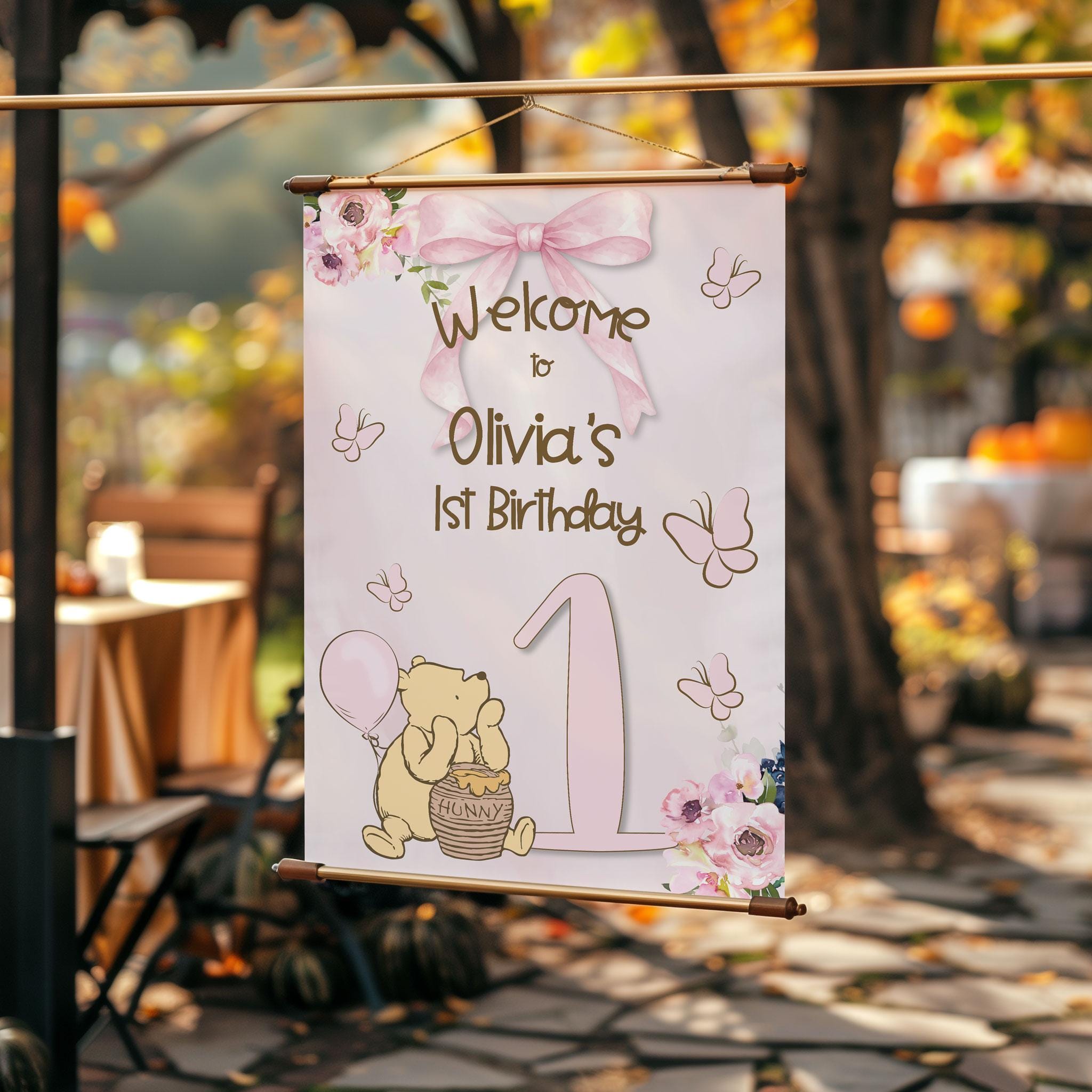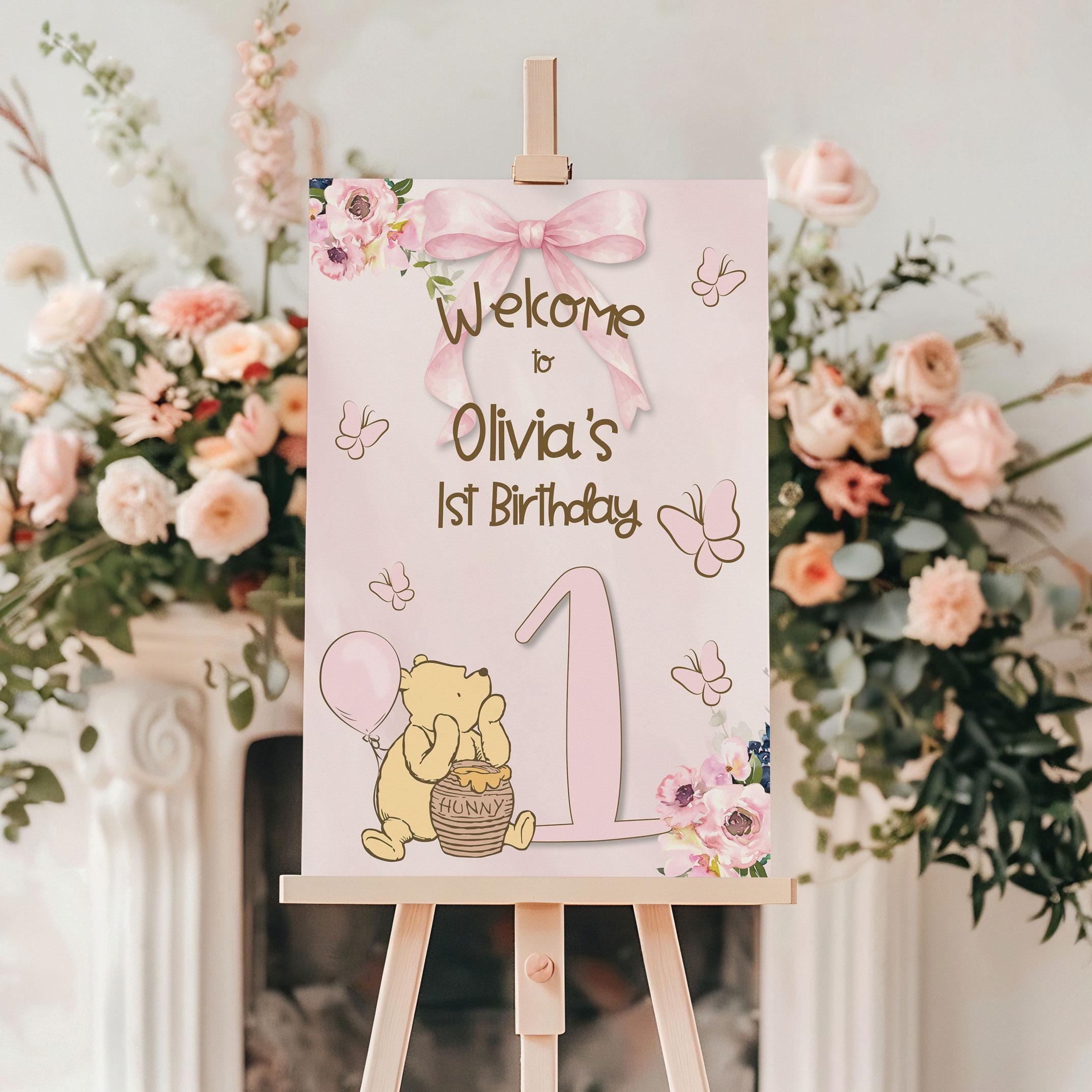 Welcome your little one to their special day with this adorable digital template of a Classic Pooh 1st Birthday Welcome Sign! Perfect for your celebration, this charming design captures the magic of childhood adventures. Easily customize the sign with your child’s name and party details—just print and display! A delightful addition to your party décor, this template brings joy to your event while ensuring a memorable celebration. Download, personalize, and let the festivities begin!
