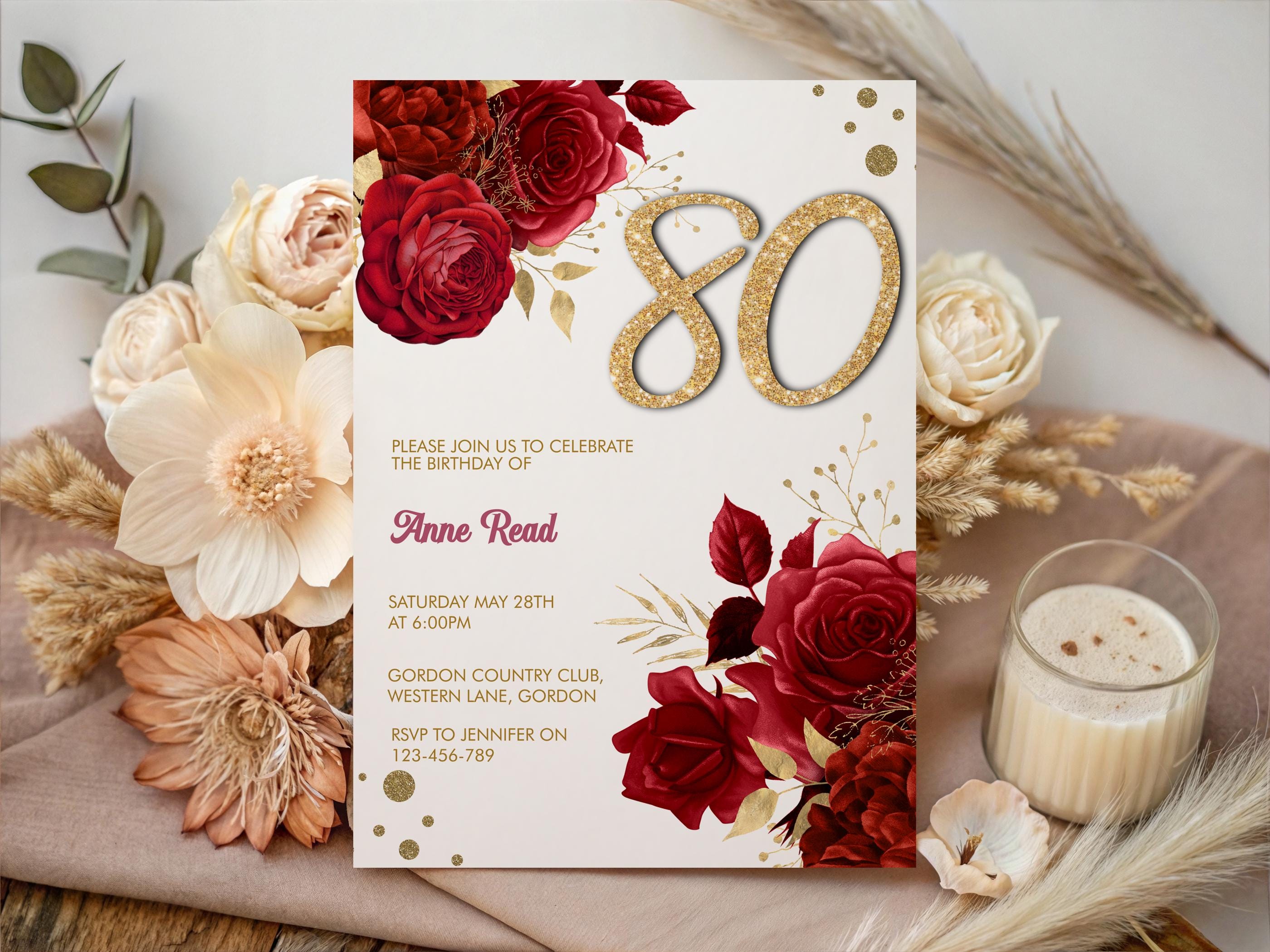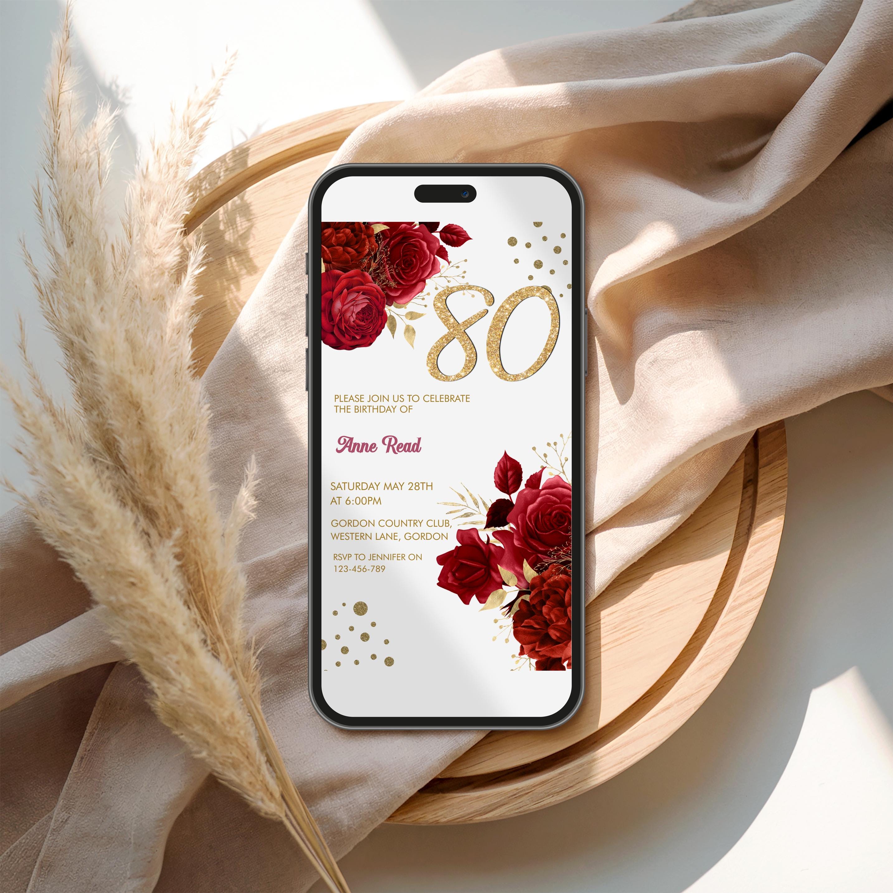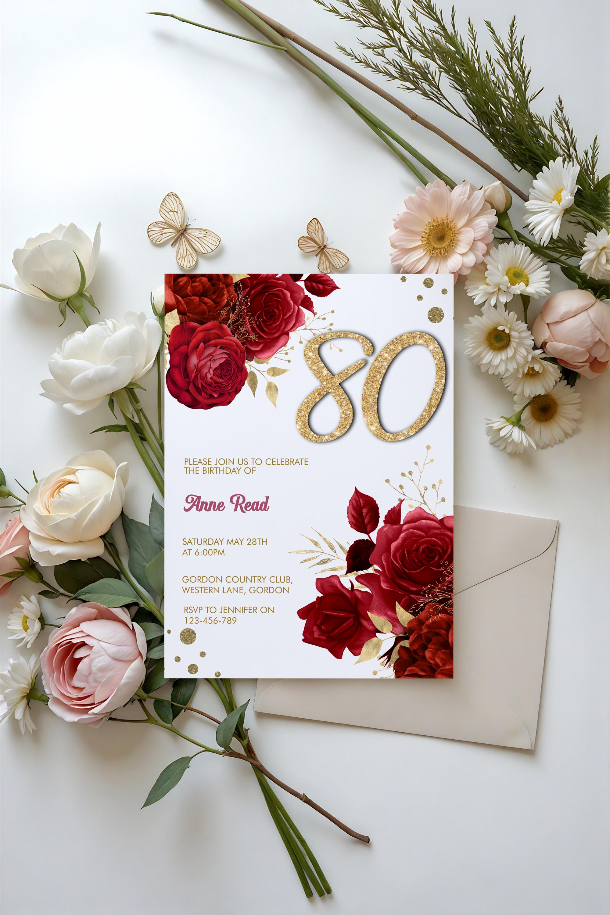 Celebrate your loved one’s birthday in style with this red floral birthday invitation template!