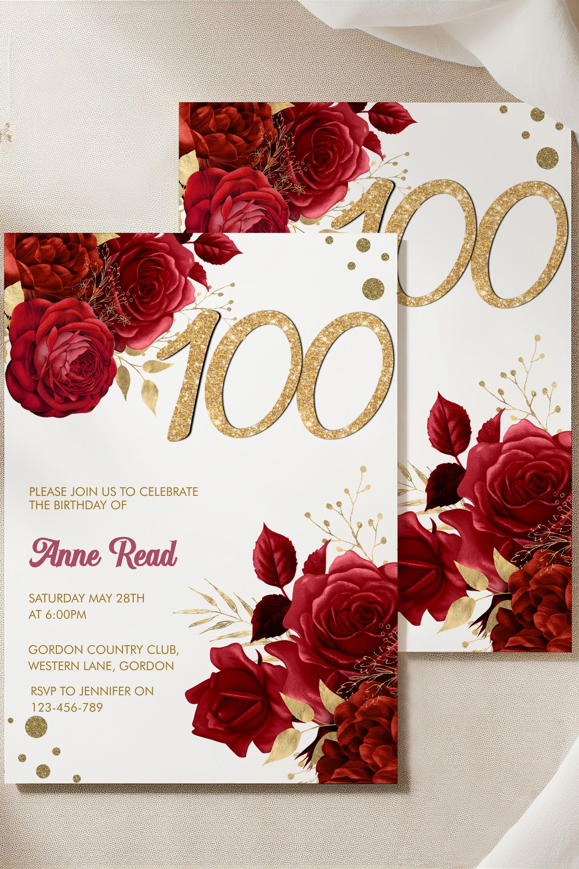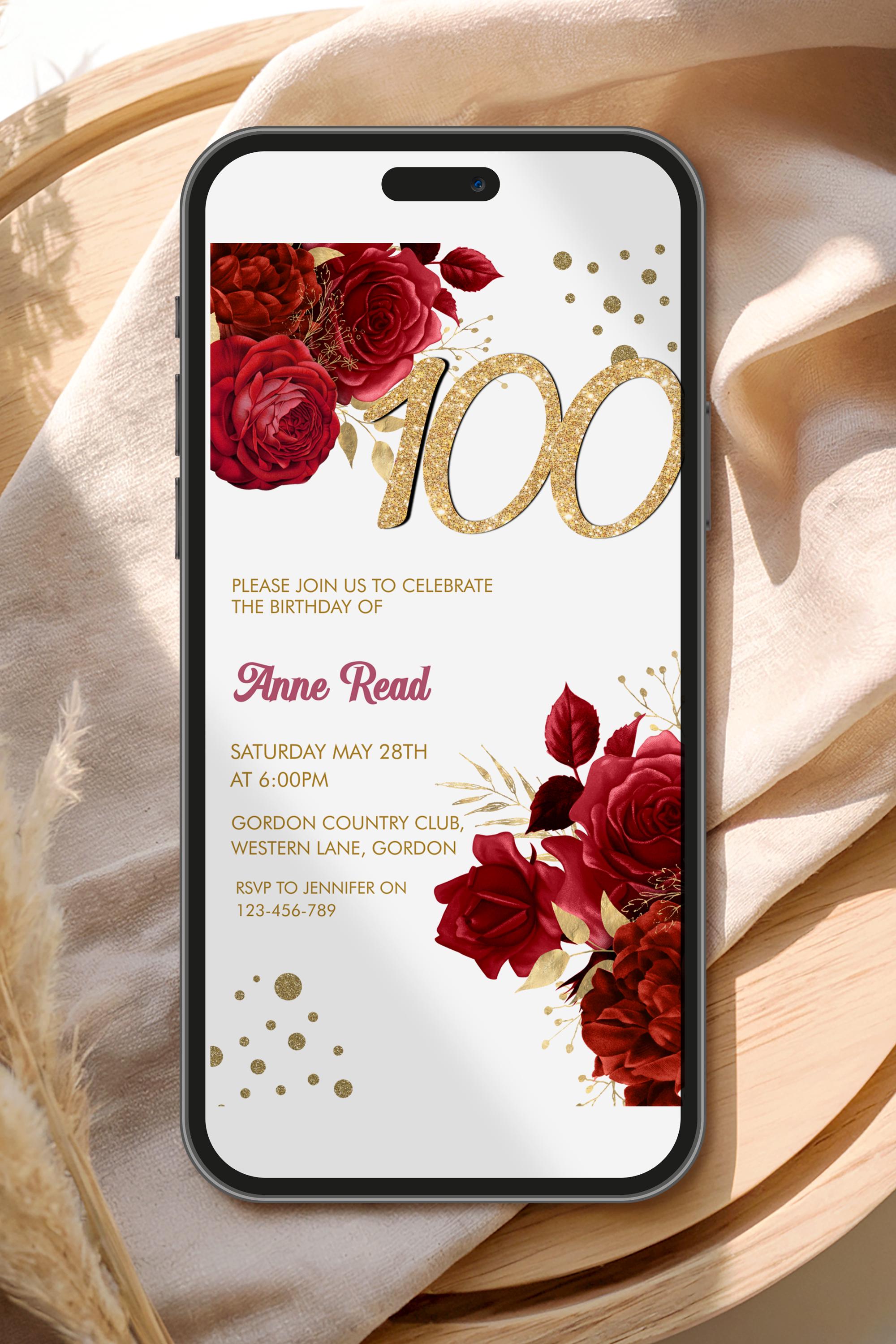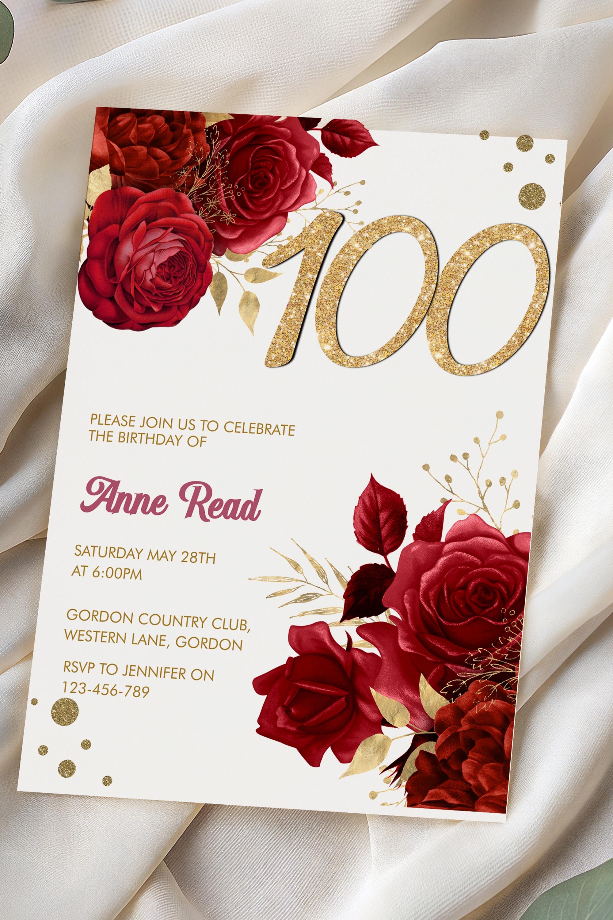 Bring a touch of heart and elegance to your celebration with this red floral 100th birthday invitation, designed to make a big impact in a small, meaningful way. The rich florals and gold‑glitter number create a warm, celebratory feel that helps you stage your event beautifully — without the stress. Edit instantly in Corjl and personalize your invitation with ease, so your special day feels intentional, joyful, and effortlessly stunning.
