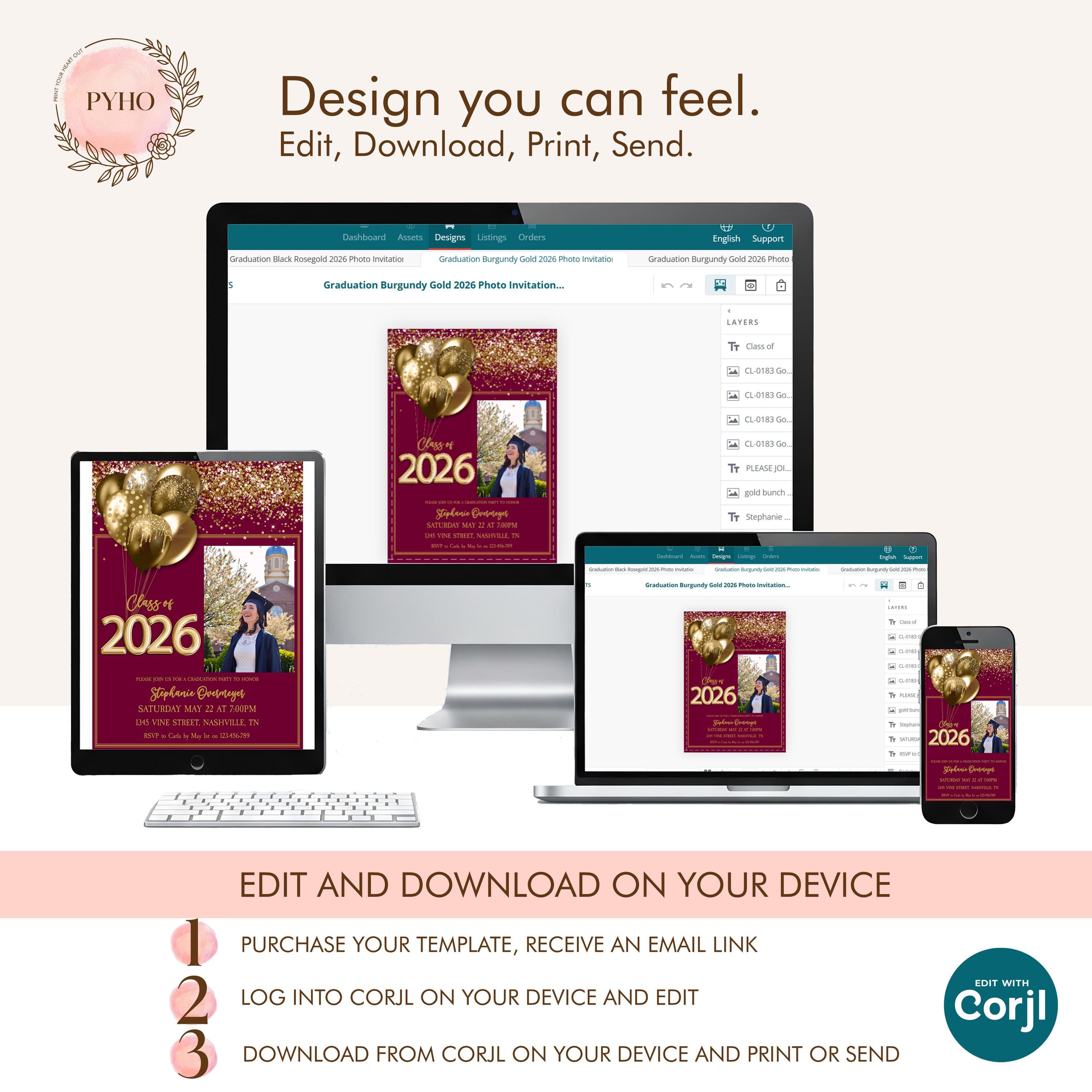 After purchase, Corjl will email you within minutes. Click the link, open your design, and start customizing. It’s fast, simple, and made to bring joy to your planning process.