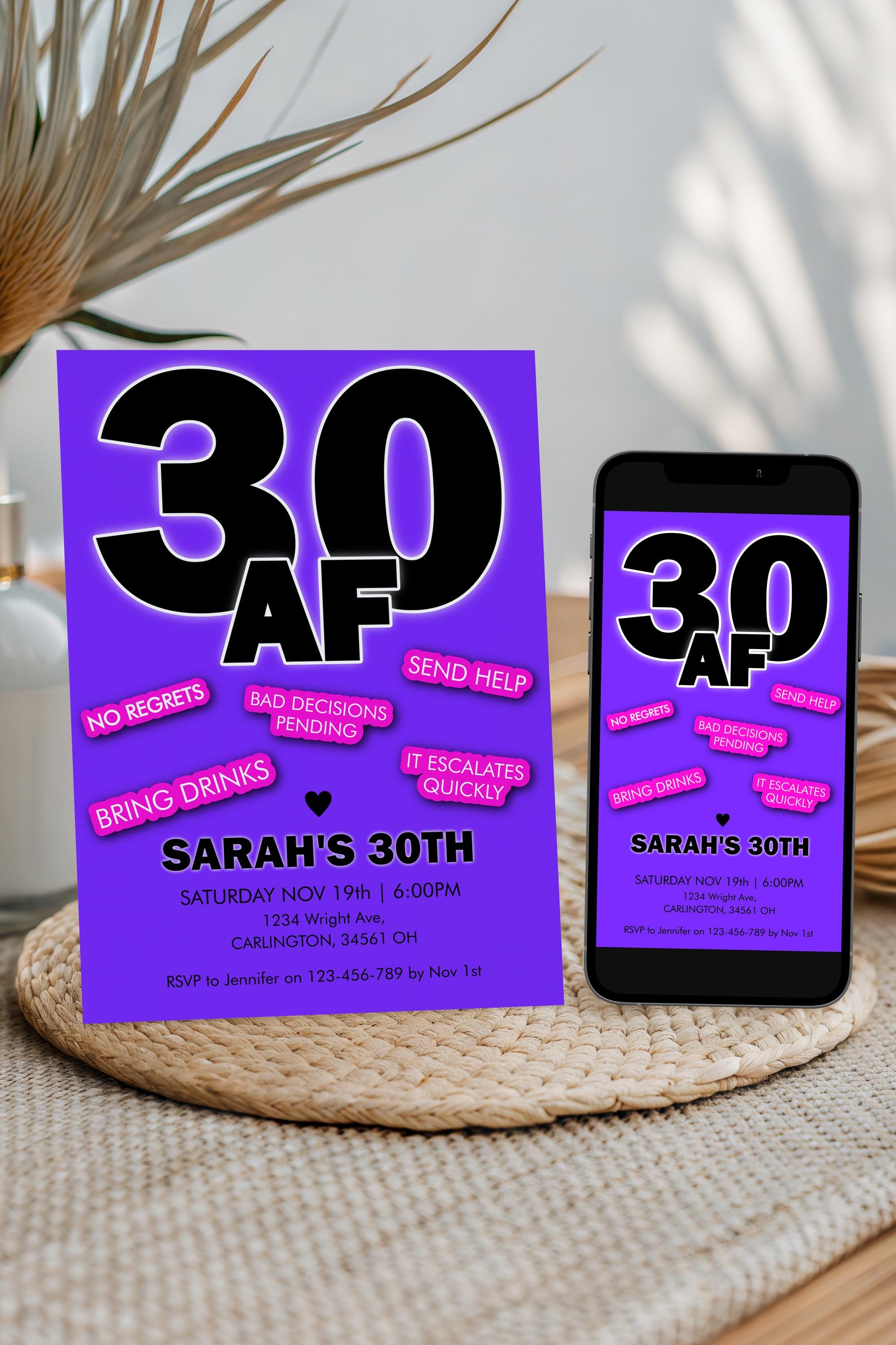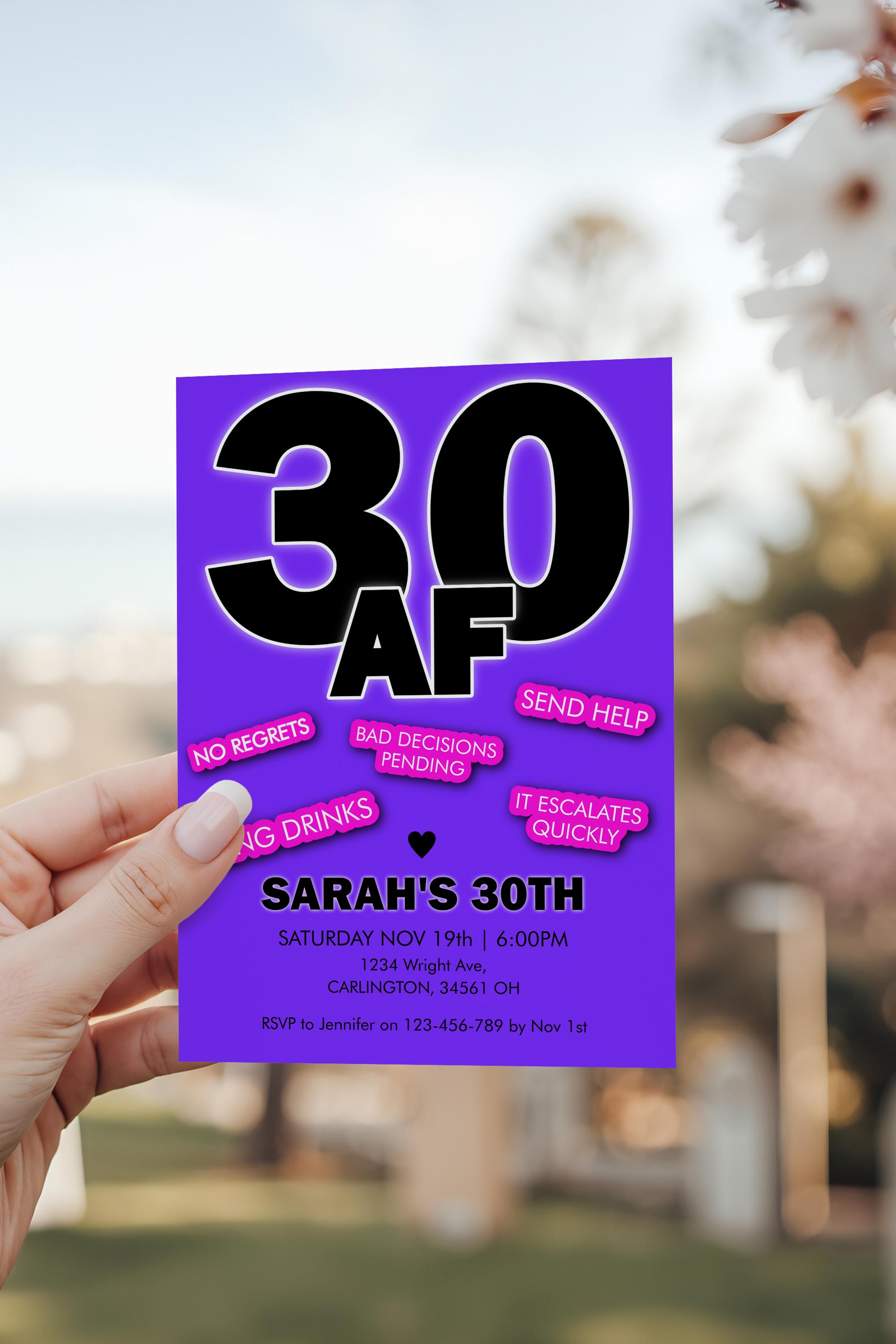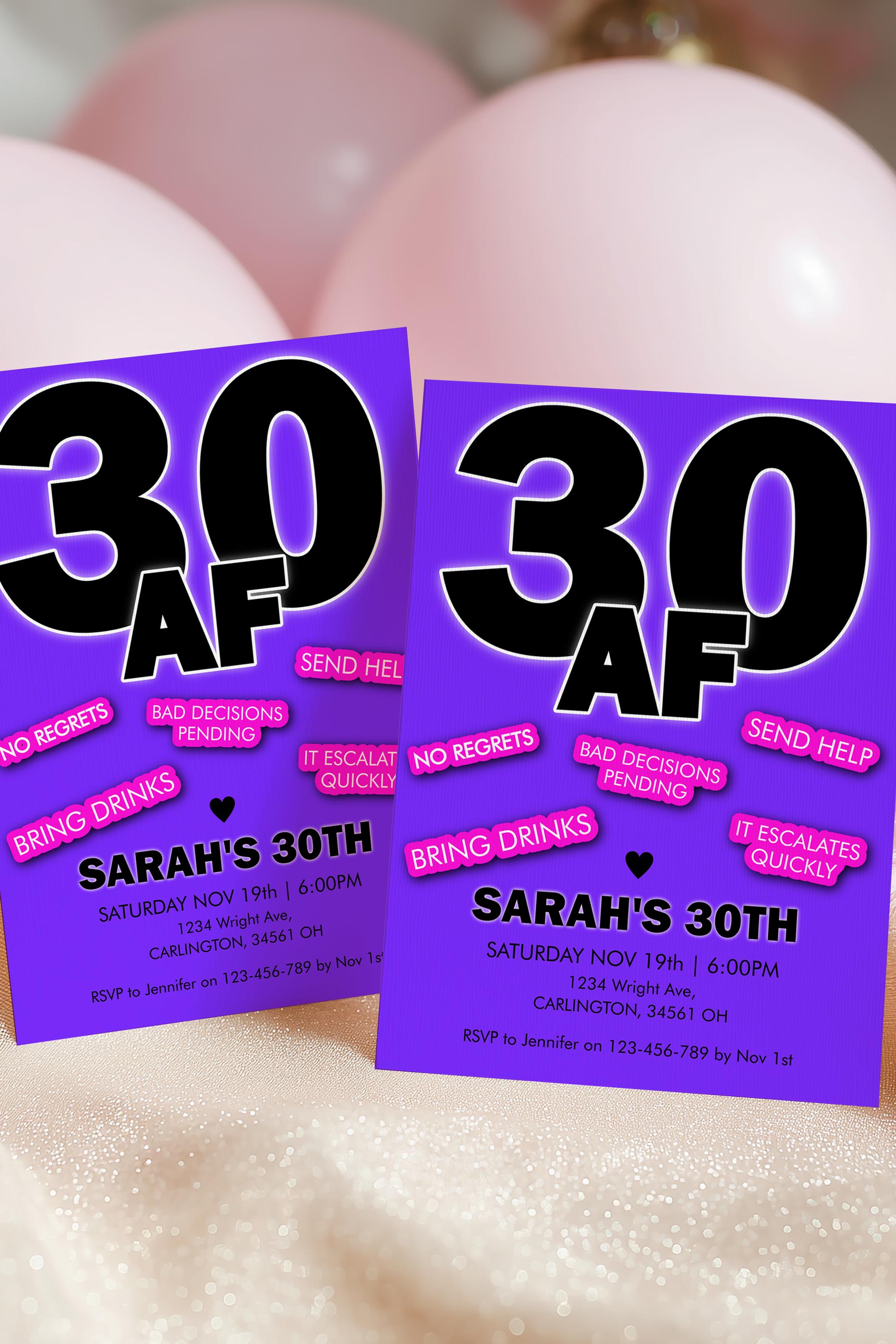 30AF Invitation Template | Funny Dirty 30 Birthday Invite | Bold 30th Party | Thirty Girls Drinks Night Bash | Adult Cocktails