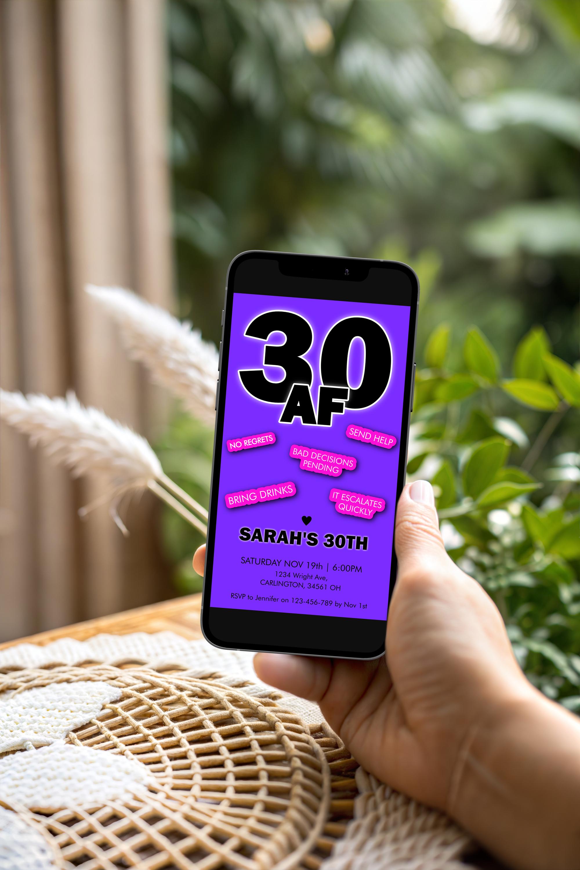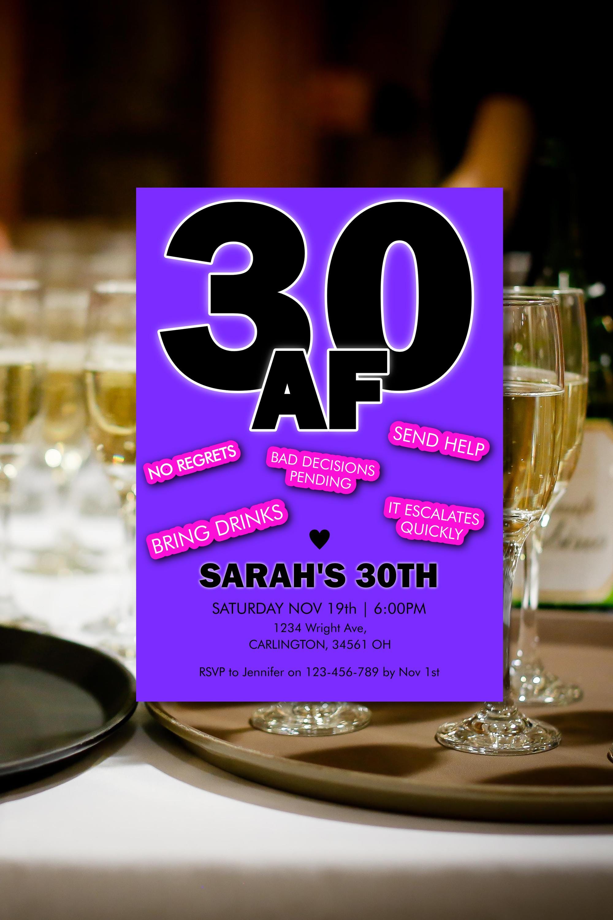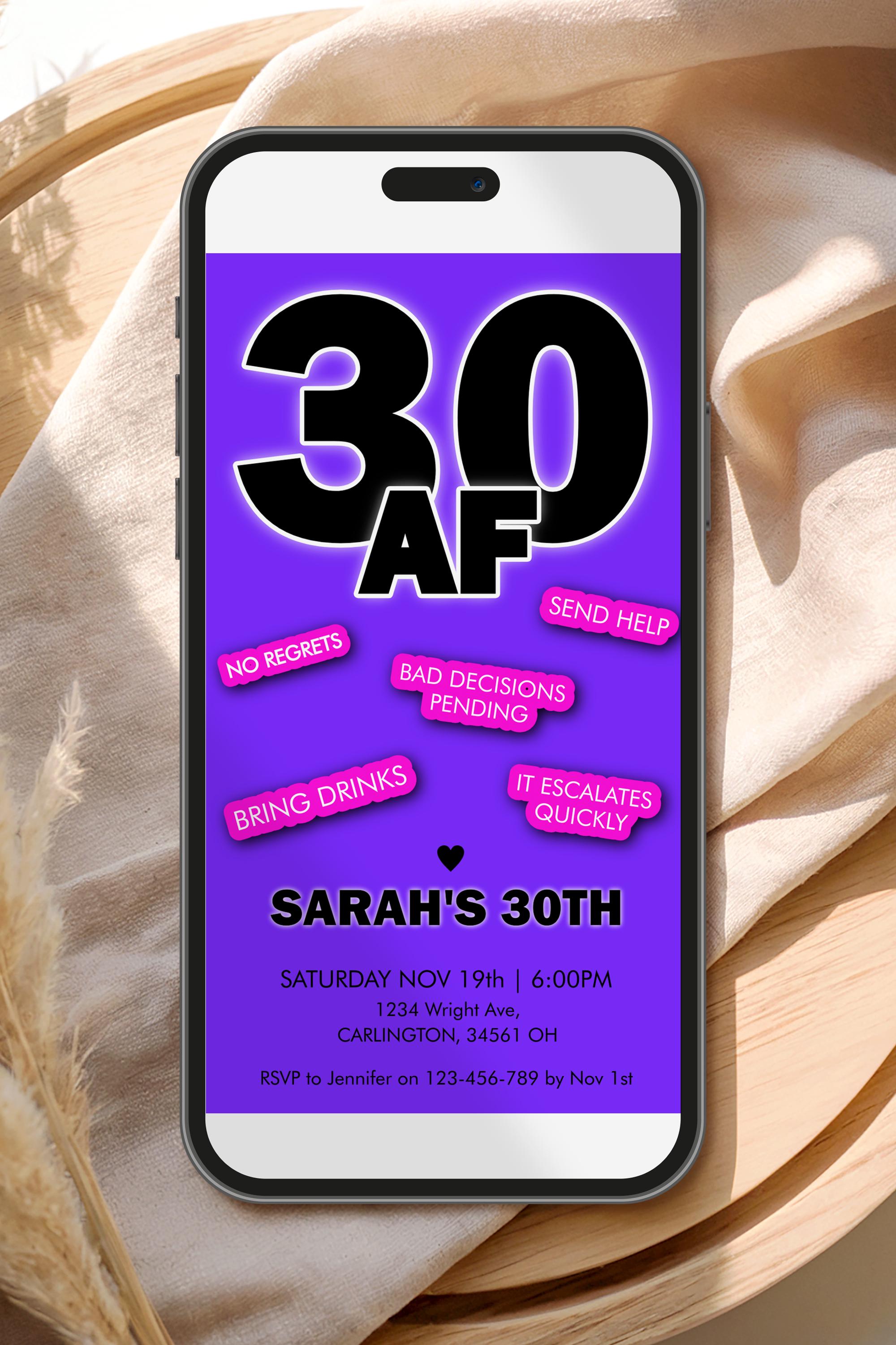 30AF Invitation Template | Funny Dirty 30 Birthday Invite | Bold 30th Party | Thirty Girls Drinks Night Bash | Adult Cocktails