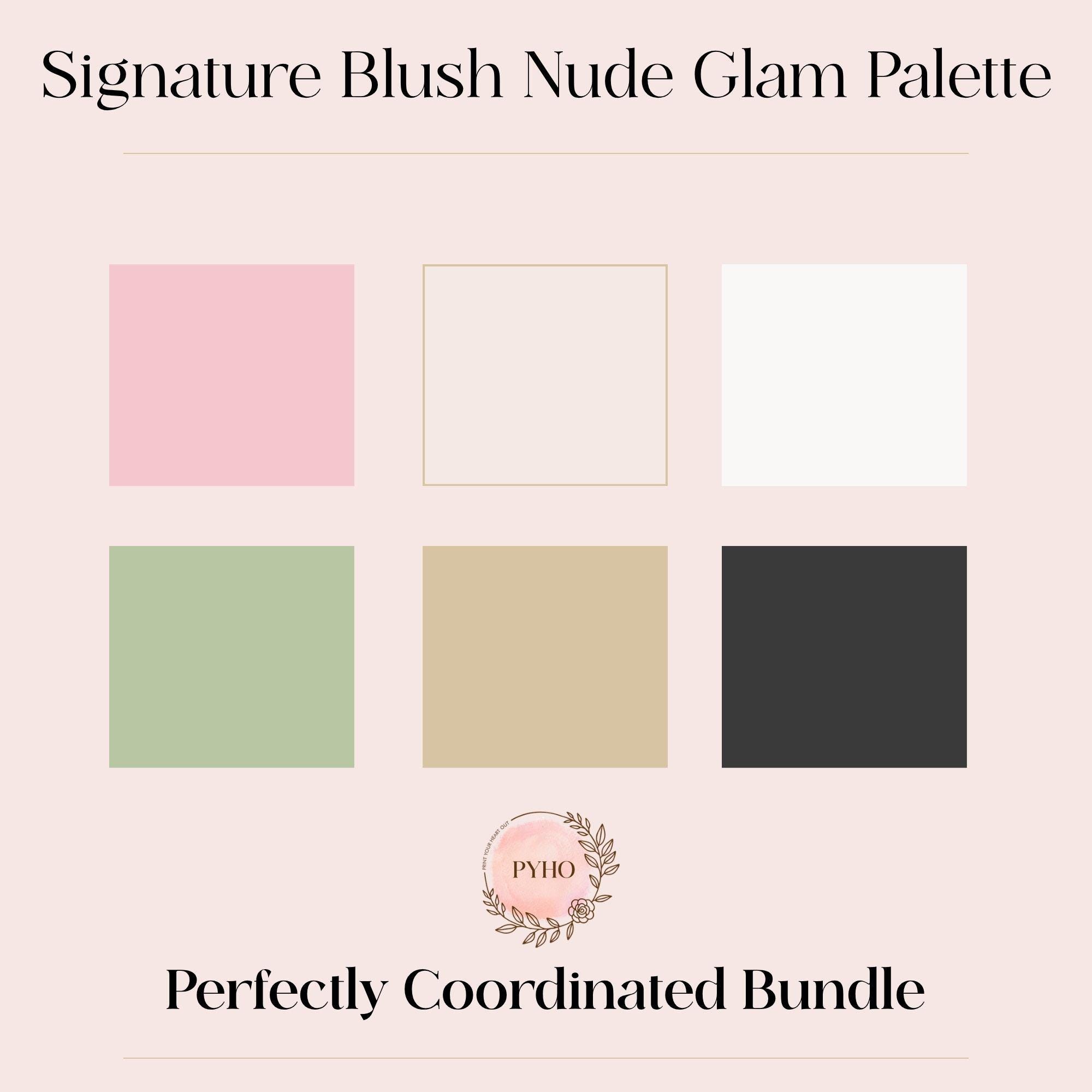 You’ll receive three matching templates in a soft blush‑nude glam aesthetic: