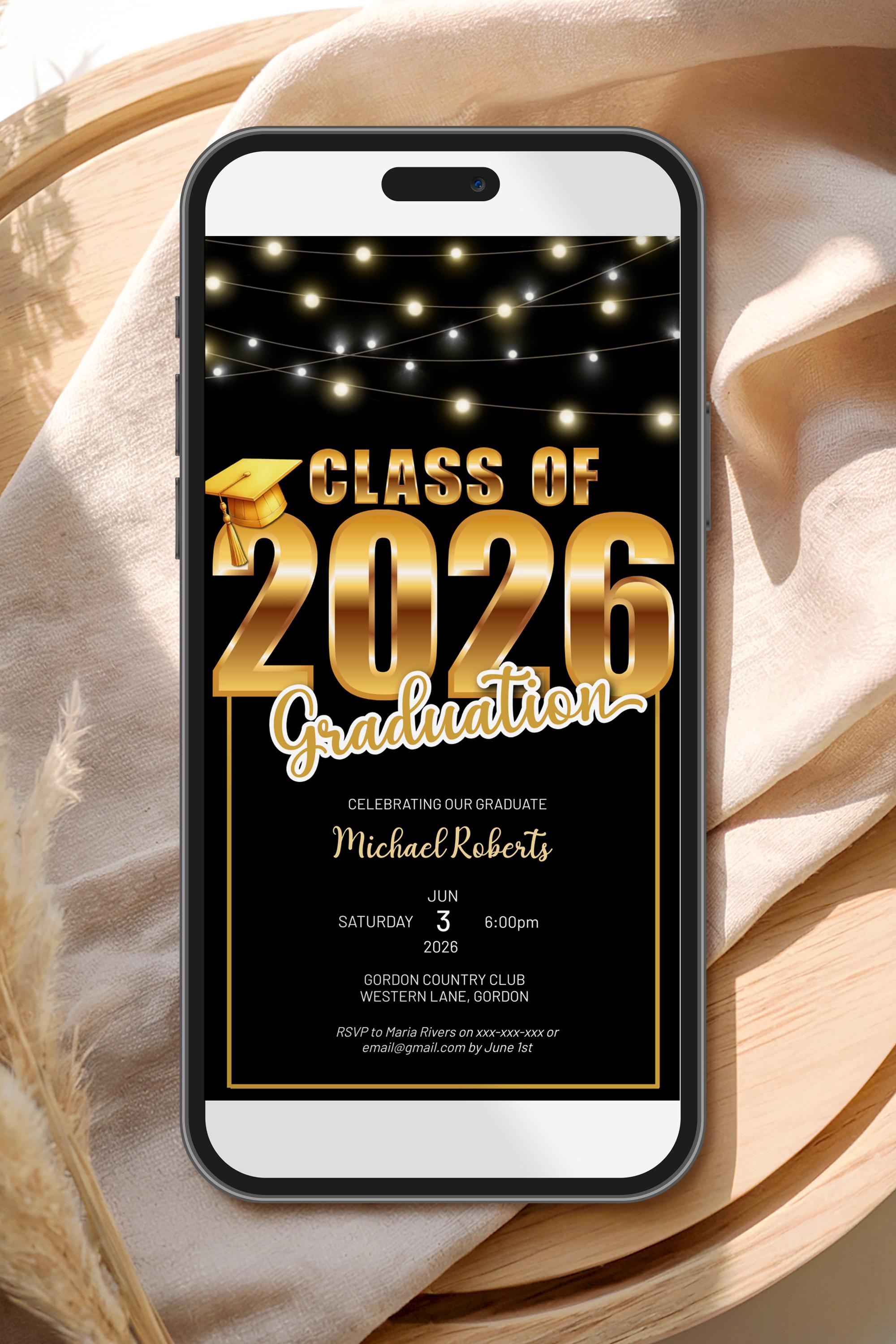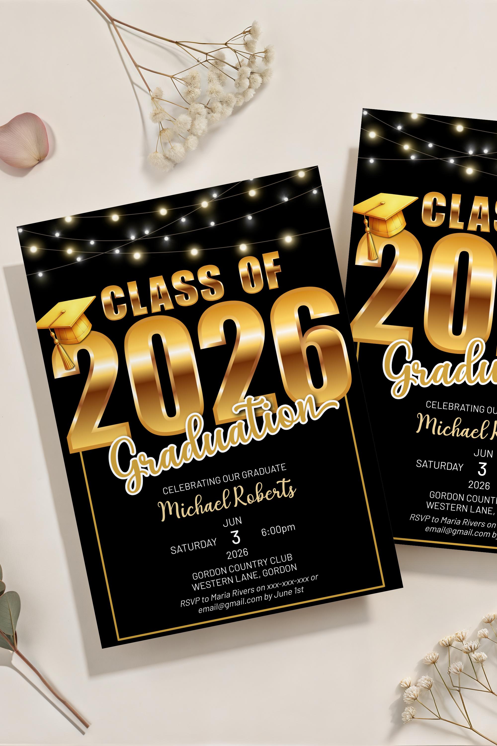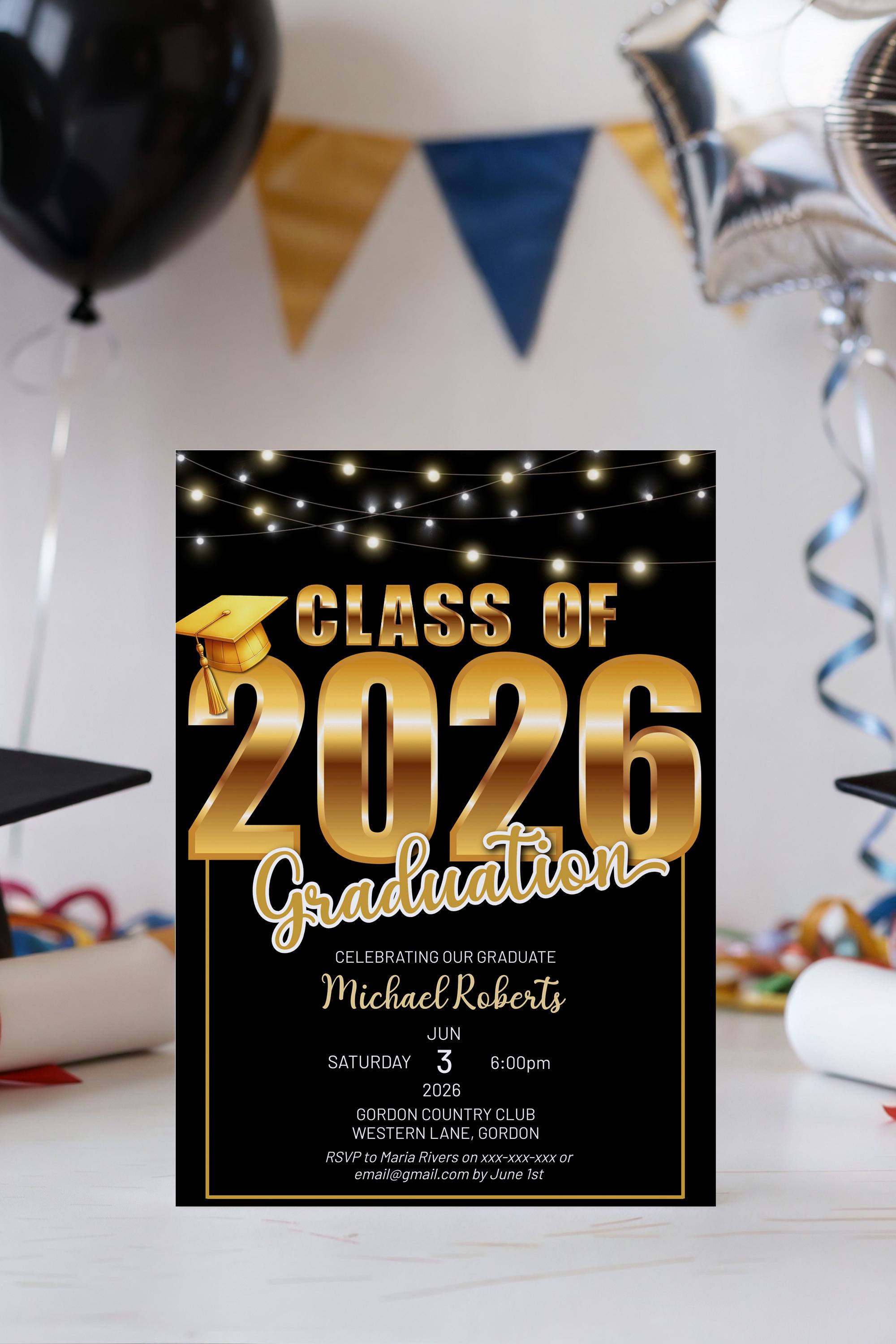 Celebrate your graduate’s big moment with a modern, stylish Class of 2026 graduation invitation designed to feel polished, personal, and effortlessly impressive. This editable template makes it easy to create a beautiful announcement without the stress — simply customize, download, and share.